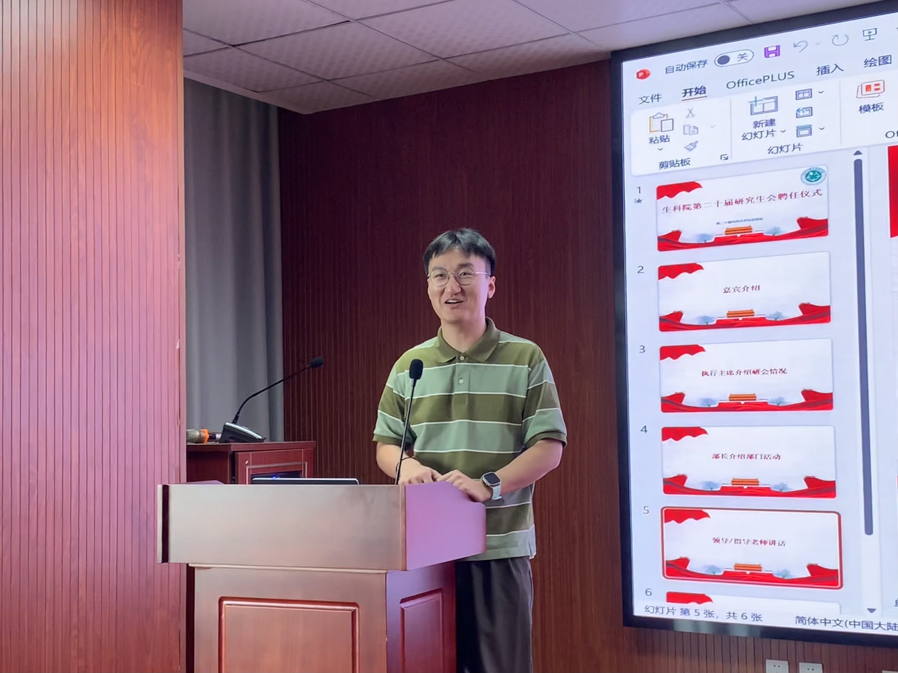 谭椰老师为第二十届研究生会全体成员颁发聘书,并向大家表示热烈欢迎。她提到,研会从最初服务同学的小型组织逐步发展为如今服务型的大团队,离不开每一届成员的努力。她希望新一届研会成员主动向优秀前辈学习,尽快熟悉学校和学院的工作节奏,快速融入集体,以饱满的状态投入到研究生阶段的学习与工作中。此外,谭椰老师还对留任干部的辛勤付出表示感谢,并希望干部们做好引领,带领新干事扎实推进工作,做到件件有落实、事事有回应。最后,谭椰老师鼓励全体成员以服务者和建设者的身份投身研会工作,在服务同学的过程中实现自我成长,在不断改进工作的过程中推进团队建设。