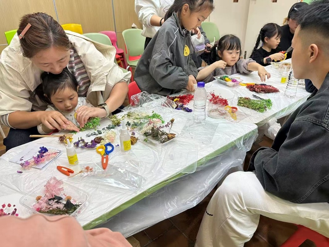 此次志愿活动,B.D.服务社的志愿者们为小朋友们解答了动植物如何散热。在孩子们天马行空的创意和灵巧的双手下,干花仿佛重新绽放,为团扇增添了几分活力。而孩子们在本次活动中,不仅在课堂上吸收了科普知识,还在手工中培养了动手能力。