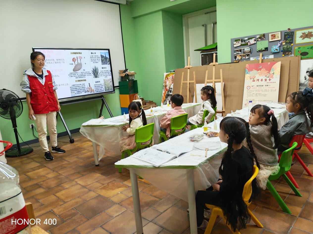 午后,志愿者们换上鲜红的志愿服,踏着和煦的春风,以饱满的热情迎接志愿环保工作的开始。首先,志愿者们举行有序分工,一部分负责招募工作,一部分负责整理制作团扇的材料和场地桌椅的摆放,一部分迎接参与活动的小朋友及家属。活动准时举行,活动伊始,讲解员便开始向大家介绍有关环保的科普知识,也有关于生态的知识,一张张色彩斑斓的图片在讲解员的描述下变得生动有趣,极大引发了小朋友们的兴趣。在提问互动环节,小朋友们纷纷举手抢答,使整个空间热闹了起来。了解了环保知识后,志愿者们开始教小朋友们制作团扇,在家长和志愿者们的引导下,小朋友们渐渐完成了属于自己的团扇。一把把独一无二的创意团扇,在大家的巧手下逐渐成型,一朵朵明艳的花儿如小朋友们灿烂的笑容。活动结束后,志愿者们用相机定格最后的一刻,纪录下小朋友们的团扇成果。