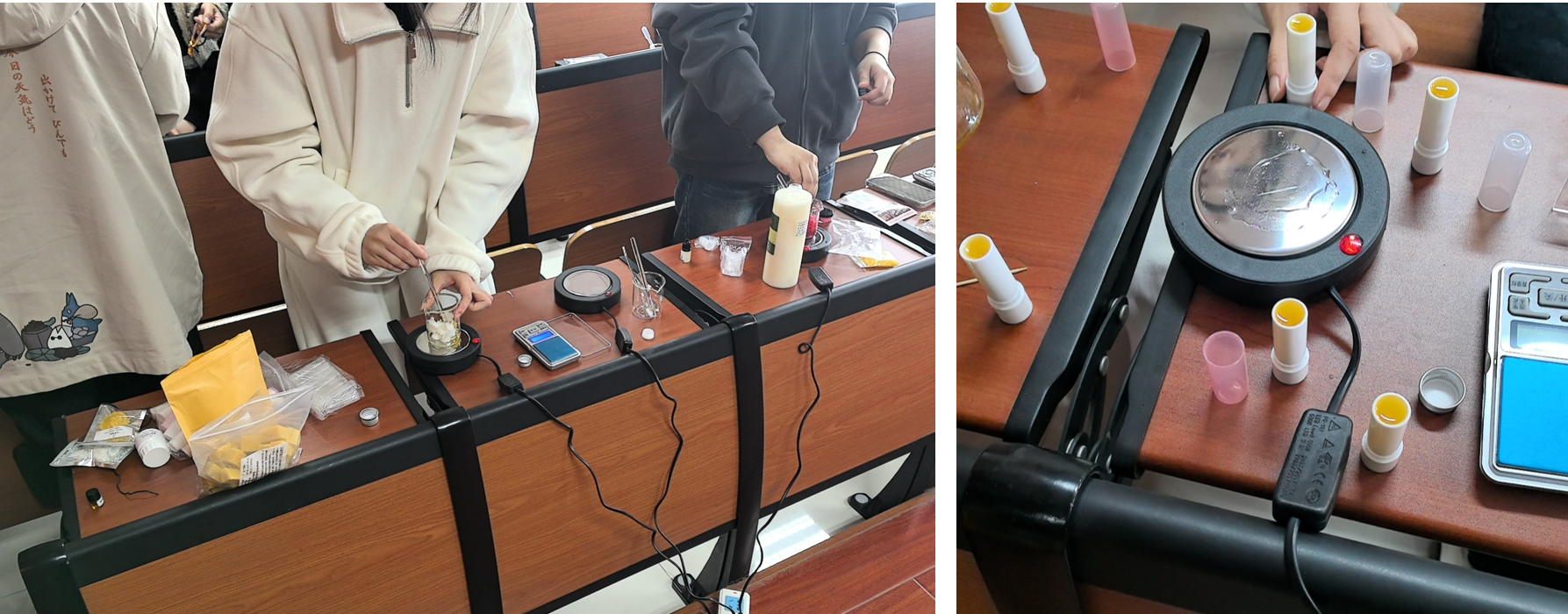 图一 线下手工唇膏制作活动现场,同学们认真制作,交流健康观念